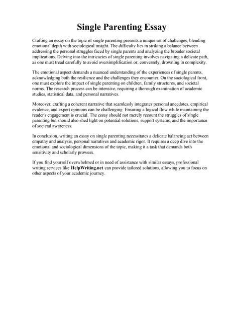 Read narrative essay on single parenting Reader